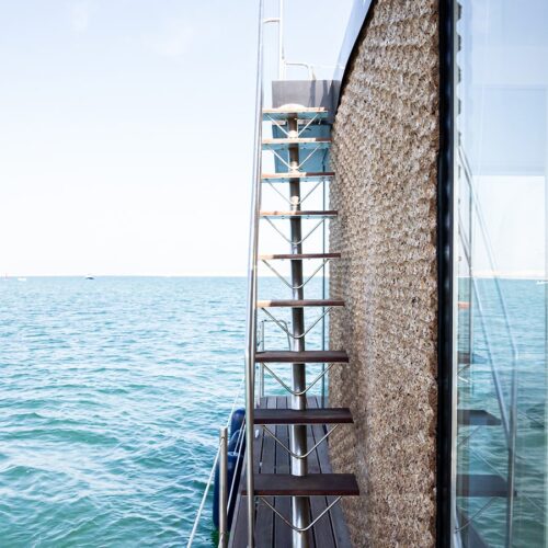 La péniche « Casa da Ria » est un bateau autonome et écologique, car elle a la capacité de produire de l’énergie pour tous ses équipements. Sa conception moderniste privilégie l’espace rationnel, le confort, l’utilité, une bonne ventilation et un bon éclairage, ce qui lui confère un caractère unique. Il est équipé pour 4 personnes et est divisé en deux étages. Le premier étage contient la chambre à coucher avec un lit double et des vues panoramiques depuis le balcon. La cuisine dispose d’une table à manger et est équipée de vaisselle, d’une petite cuisinière, d’un réfrigérateur (avec tiroir congélateur), d’une cafetière et d’un four à micro-ondes. La douche, le lavabo et les toilettes se trouvent également à cet étage. La table de la cuisine peut être transformée en canapé-lit pour 2 personnes. Le deuxième étage se caractérise par une vue privilégiée sur la Ria Formosa, avec un solarium ombragé et des chaises longues. Le bateau dispose également d’échelles d’accès à l’arrière et d’un petit bateau à rames semi-rigide pour se rendre sur les plages désertes situées à environ 50 mètres du bateau.